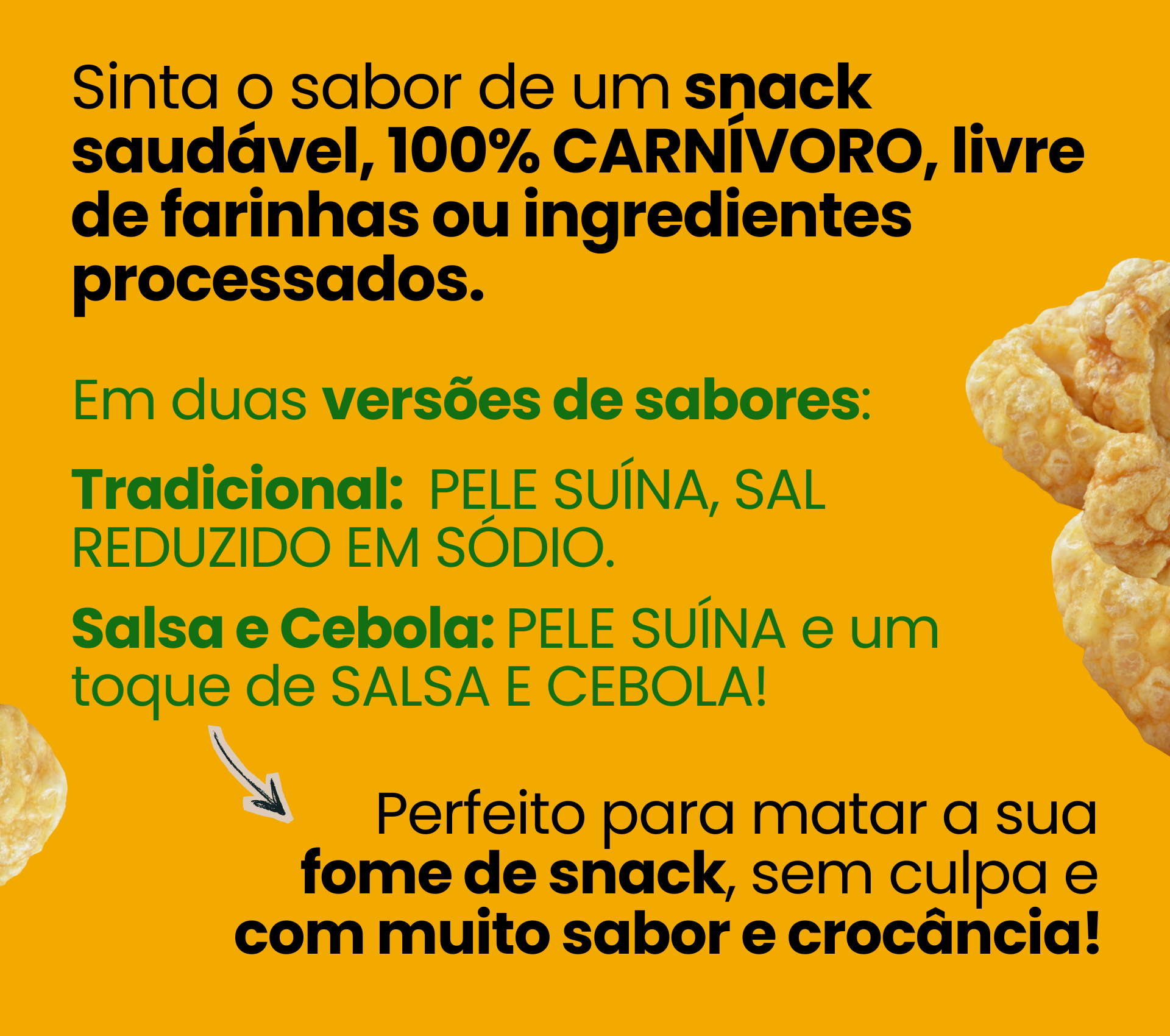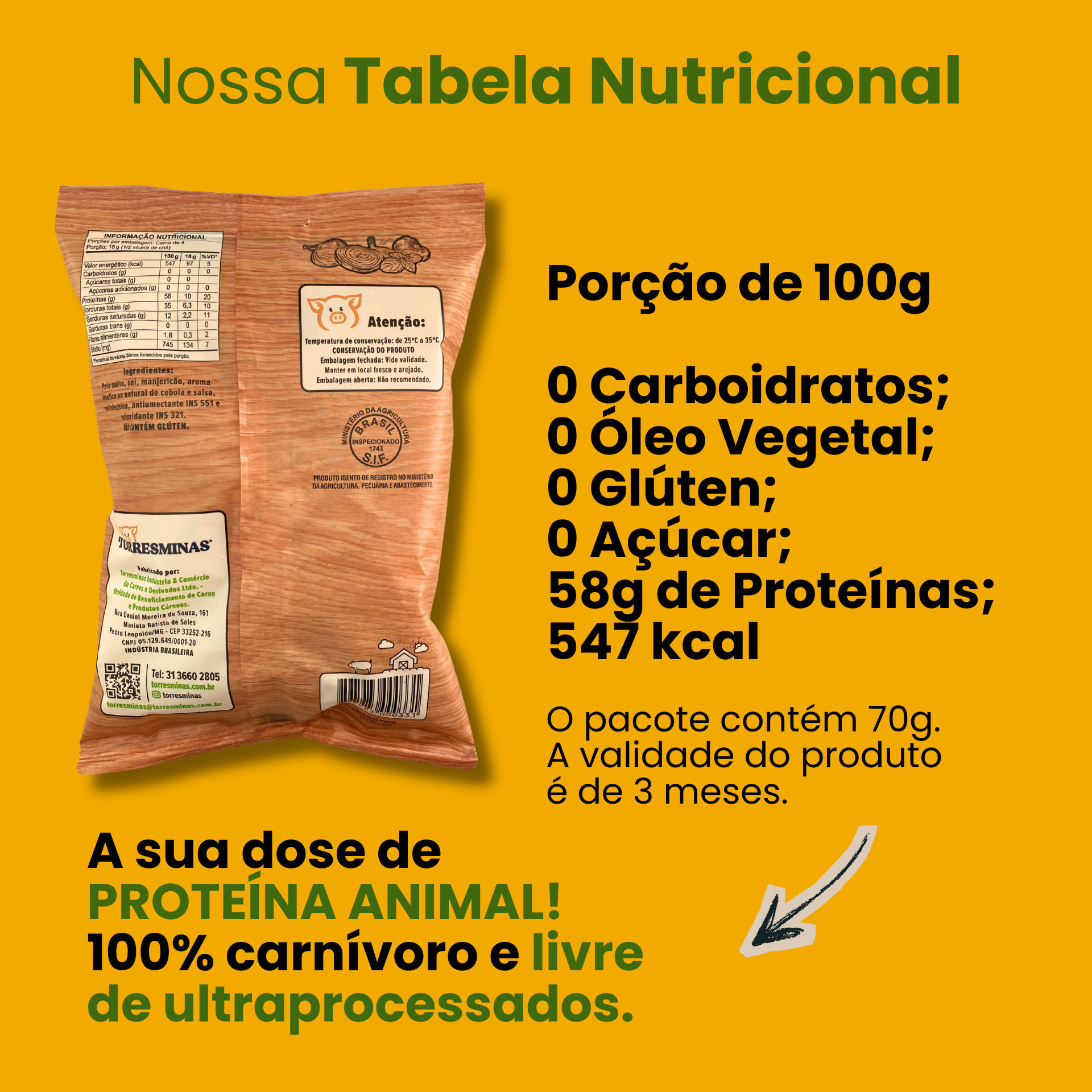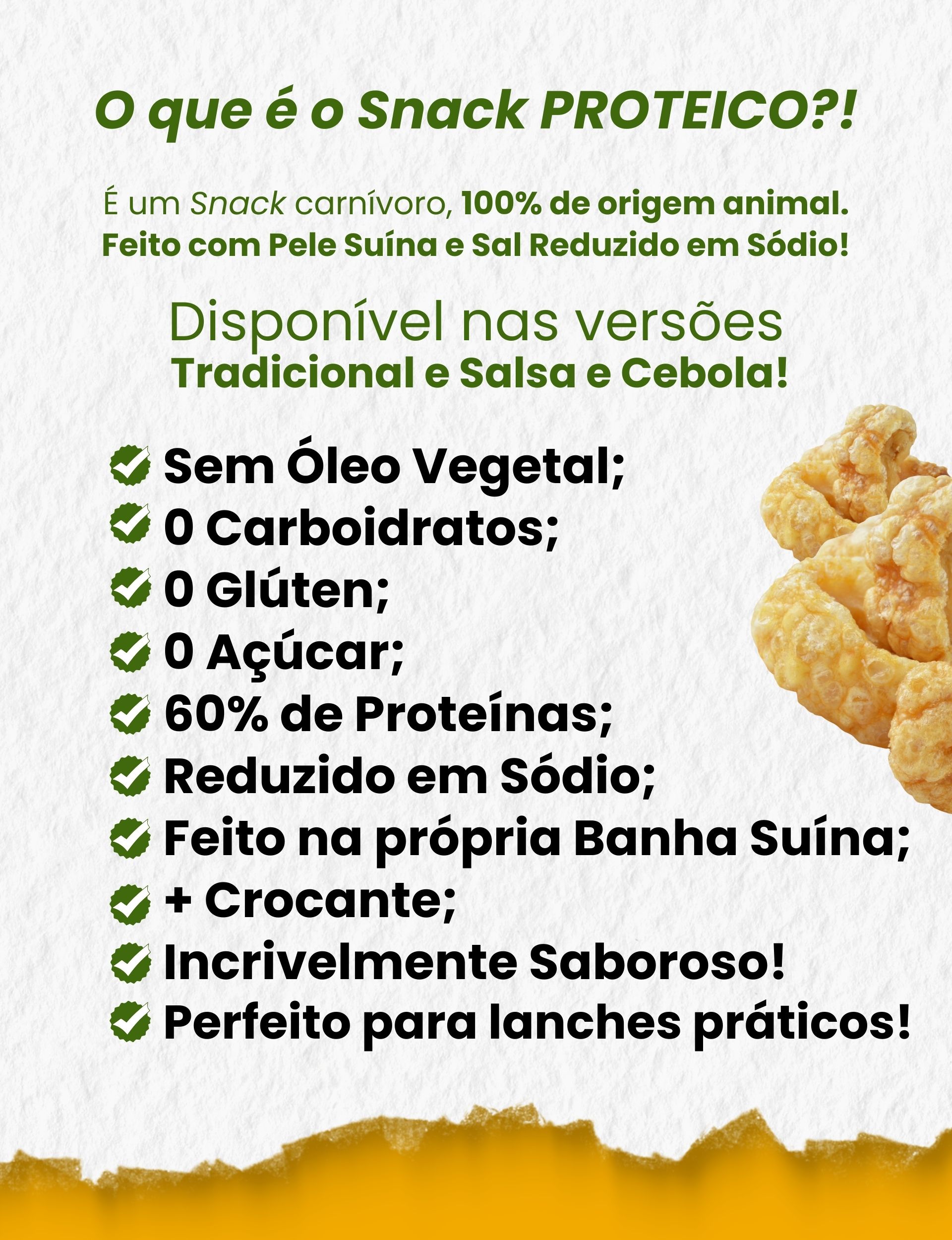 💪🐽 Mate a sua fome de Snack sem sair da dieta! Produzido na própria banha suína, 0 Carboidratos e com 60% de PROTEÍNAS!